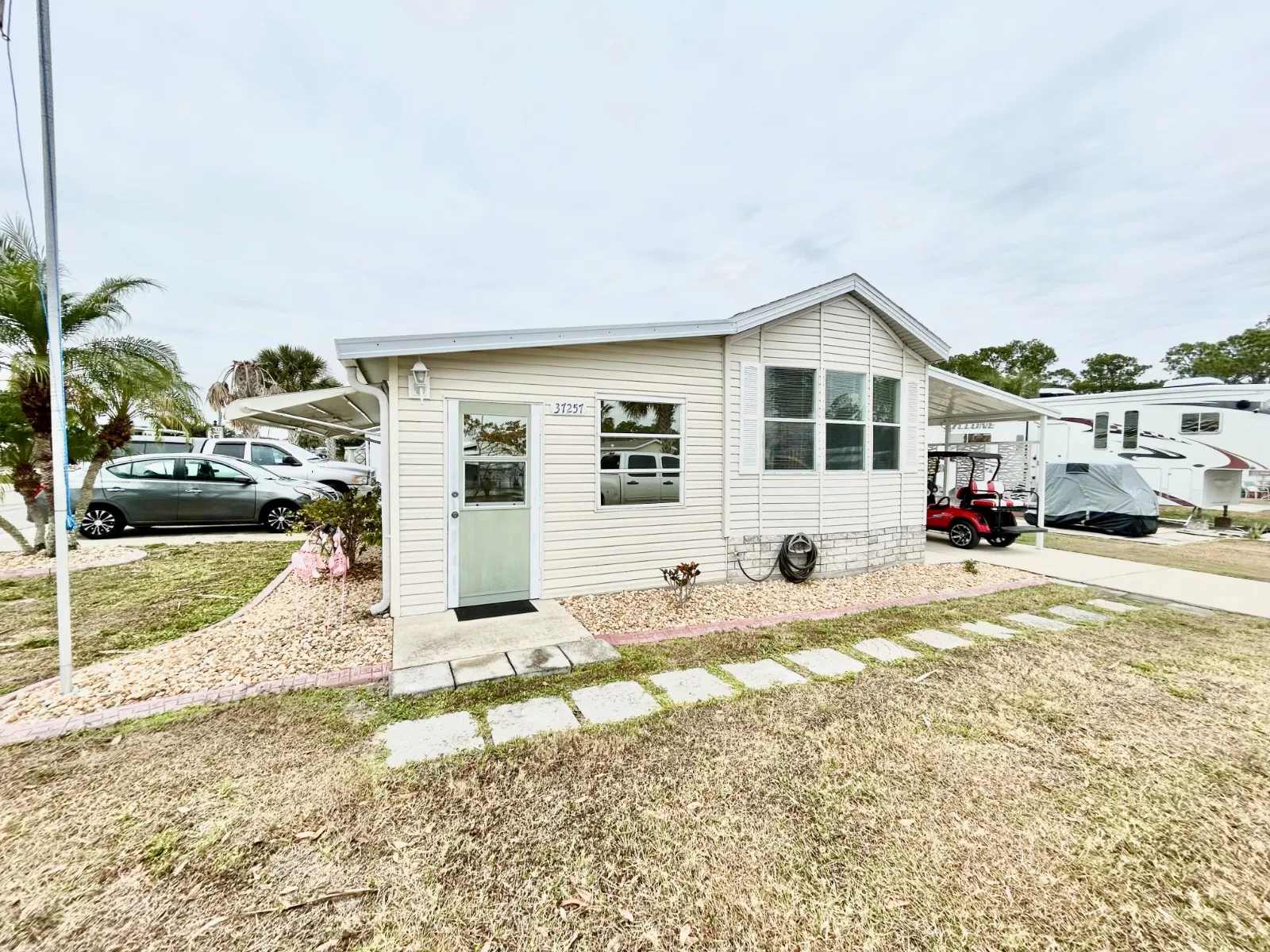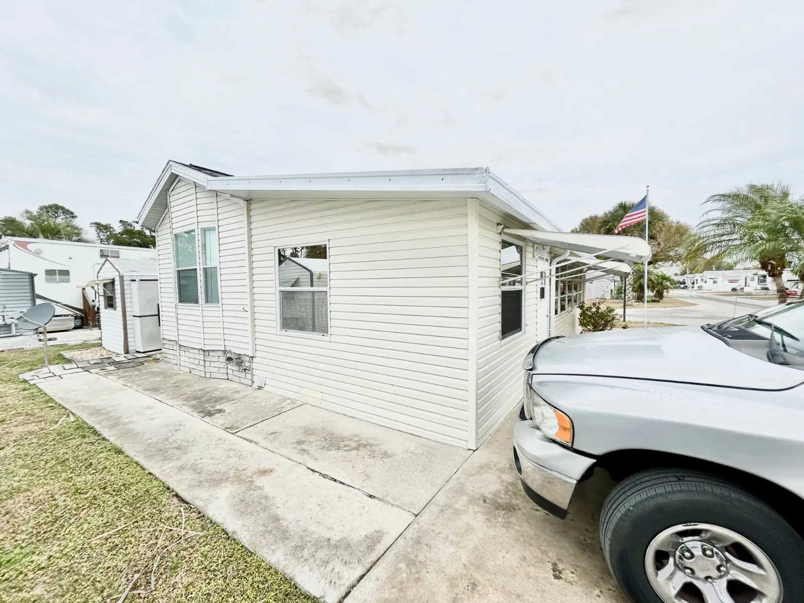 This beautifully maintained two-bedroom, one-bath home comes fully furnished and move-in ready. The bright, open layout features an inviting open kitchen and plenty of natural light throughout. Enjoy year-round comfort with central air and heat, and added peace of mind with hurricane shutters and a shingle roof just four years old. Relax or entertain in the Florida room or step outside to the patio area, perfect for enjoying the outdoors. Additional features include a storage shed for extra convenience. A well-cared-for home offering comfort, functionality, and easy living-this one is a must-see! The home is located on a corner lot and has two separate driveways. Located in a vibrant community brimming with amenities, you’ll have access to: Two Heated Pools + Hot Tub Fitness Center & Dance/Exercise Classes Covered Pavilion, BBQ Pavilion & Outdoor Entertainment Stage Sports Courts – Pickleball, Tennis, Basketball, Shuffleboard & More Library, Pool Hall, & Wi-Fi Available Dog Park, Nature Trail, Fishing Lakes, & Waterfront Fire Pit Dock, Screened Activity Dock, and Boat/RV Storage Planned Activities & Trips by On-Site Activities Director Lot Rent: $655 Enjoy the lifestyle you’ve been looking for – whether it’s active days on the courts, peaceful walks on the nature trail, or laid-back evenings by the fire pit. Call today to schedule your showing! Golf Cart is negotiable.