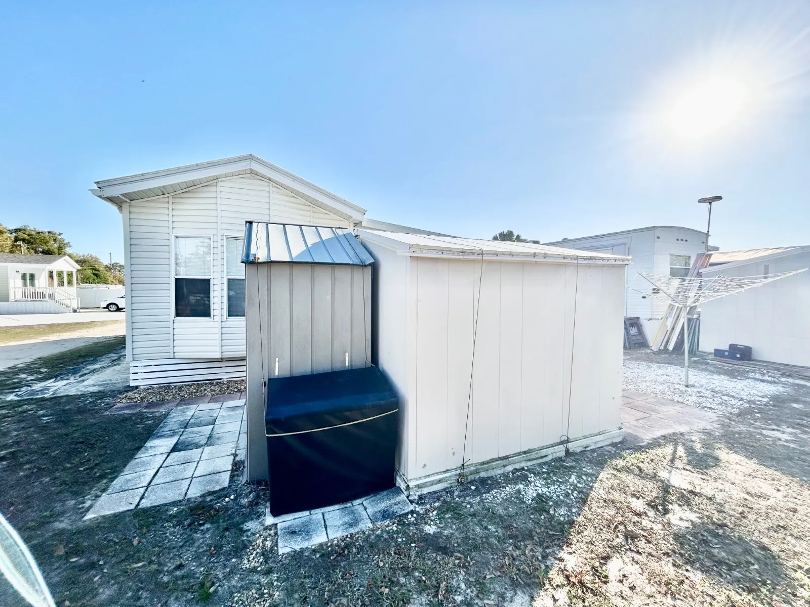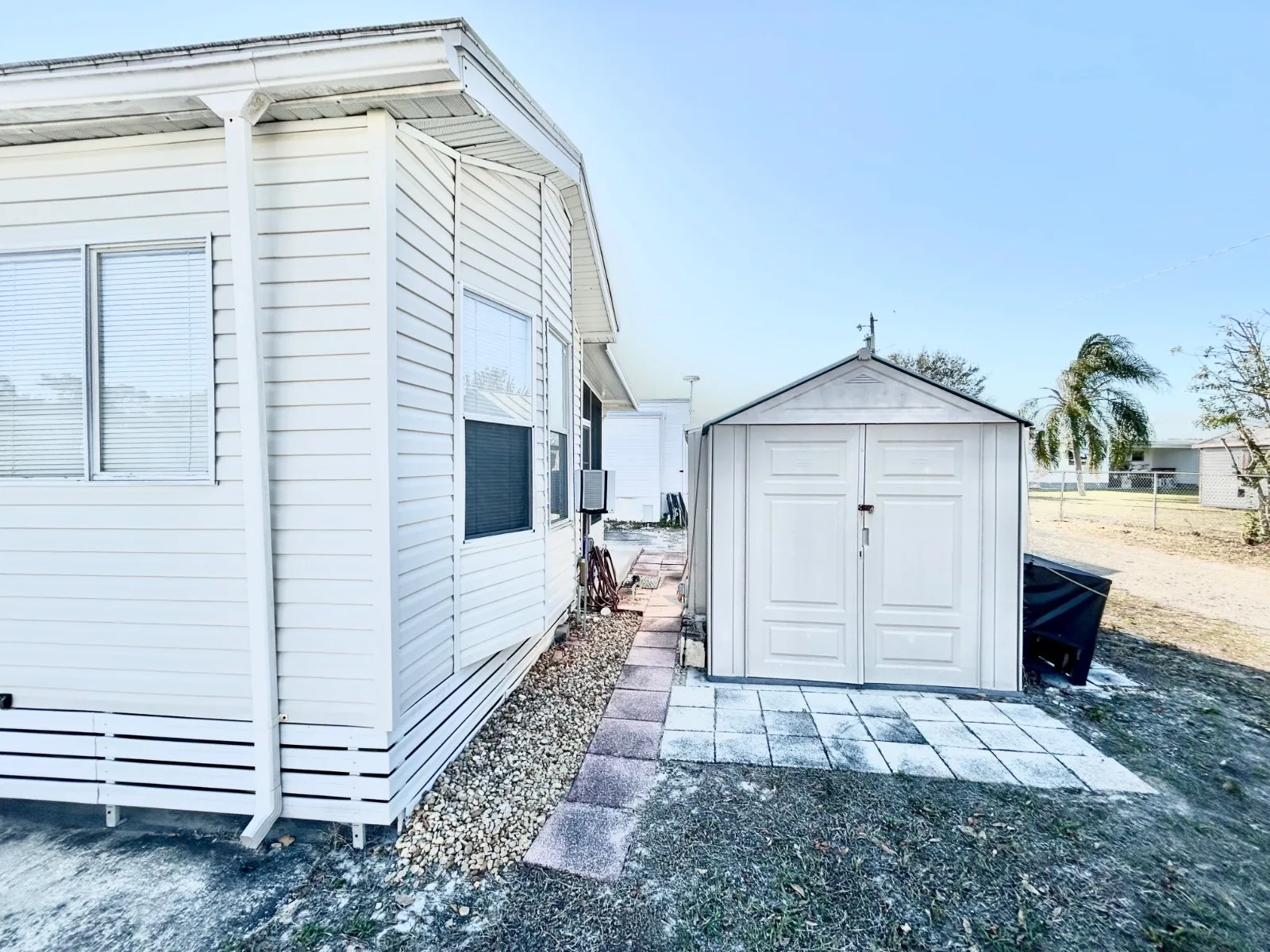 Welcome to your new home in the highly desirable Sunny Pines 55+ Community in Sebring, Florida! This delightful fully furnished, 1-bedroom, 1-bathroom home features an inviting open layout with a 15X10 enclosed porch that creates a spacious and airy feel. Crown Molding & Vaulted Ceilings, Ceiling Fans, Laundry Room, Hurricane Shutter. Mini split & laminate floors are two years old. This home includes two storage buildings and the golf cart is negotiable. The Sunny Pines community also offers wonderful amenities such as shuffleboard, a rec room, and a pool, making it easy to socialize and stay active. Conveniently located close to shopping, dining, and more, you’ll love the easy access to everything Sebring has to offer. Don’t miss out on this fantastic opportunity to live in a vibrant 55+ community with all the comforts you need. Lot rent $675 – includes amenities, lawn care and garbage. Contact us today to schedule a tour!