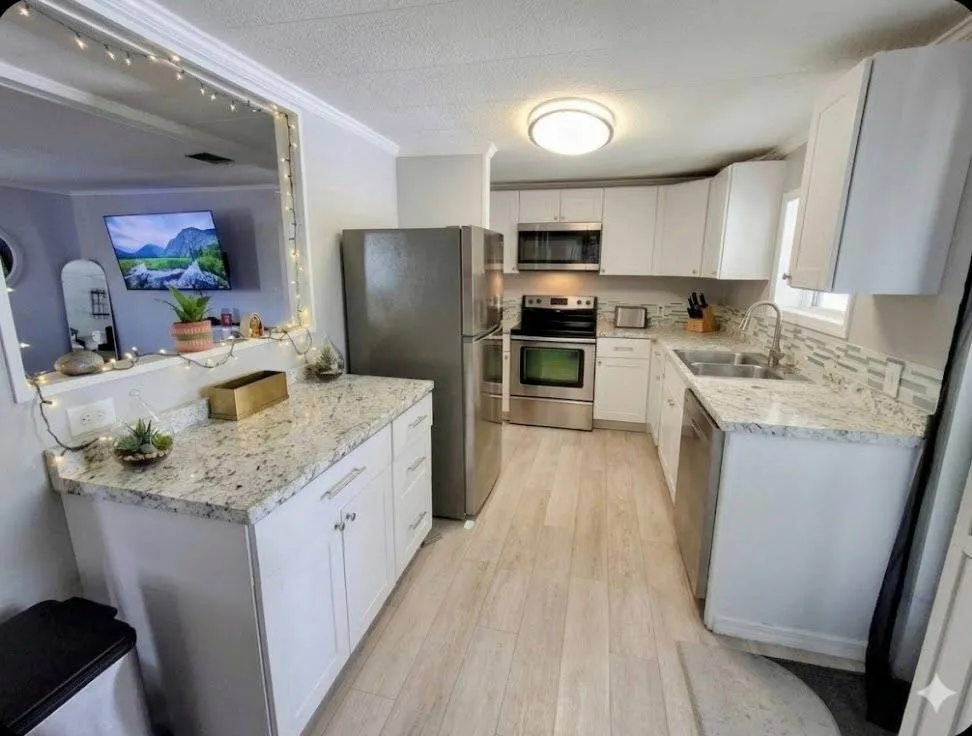 Check out this beautiful waterfront mobile home located in . This desirable 55+ community also welcomes residents 40+ and allows up to two pets. Enjoy an active lifestyle with amenities including a clubhouse, heated pool, and a friendly, social atmosphere. Situated right on the water, this home offers great fishing literally in your backyard-and best of all, it remained high and dry with no water intrusion. The home has been thoughtfully updated: – 5 years ago: New TPO roof – 2 years ago: Full remodel including subfloors, kitchen, and bathrooms – Last year: New A/C system installed Additional upgrades include updated plumbing and a newer hot water tank. Inside, you’ll find: – Two spacious bedrooms with large closets – Two generously sized bathrooms with ample storage – A remodeled kitchen with newer appliances – Dedicated laundry room with washer and dryer Relax and unwind in the screened-in porch overlooking the water, perfect for enjoying peaceful lake views. A new seawall was also recently completed, adding both value and peace of mind. This home truly needs to be seen to be appreciated-schedule your private showing today!